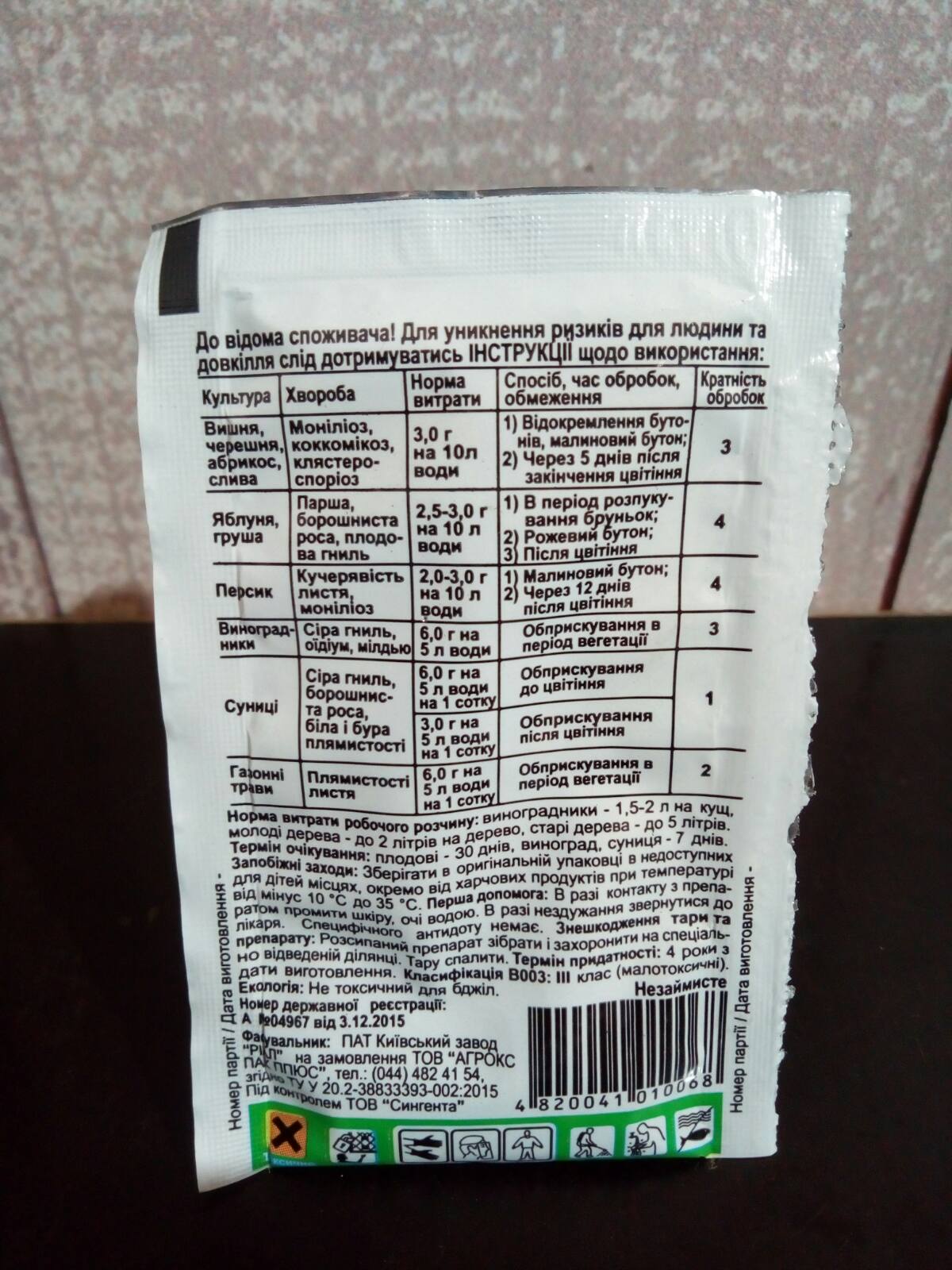 Фунгицид системного действия для защиты семечковых, косточковых плодовых культур, винограда