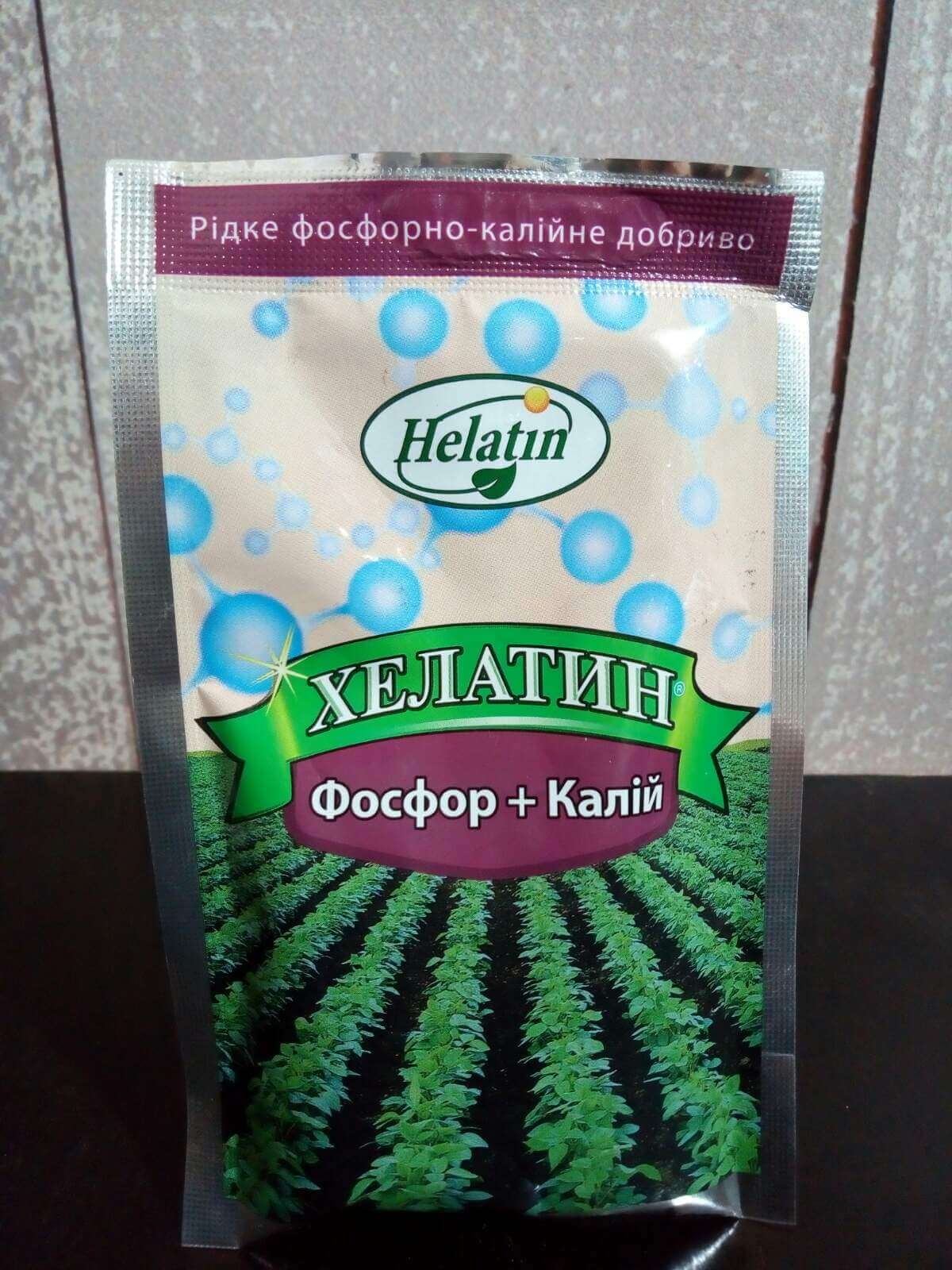 Добриво Хелатин Фосфор + Калій — універсальне водорозчинне добриво, що містить два життєво важливих елементи в легкодоступній хелатній формі. Підходить для овочевих, ягідних, баштанних, плодових, зернових, технічних, бобових культур, винограду, квітів, декоративних дерев та чагарників.